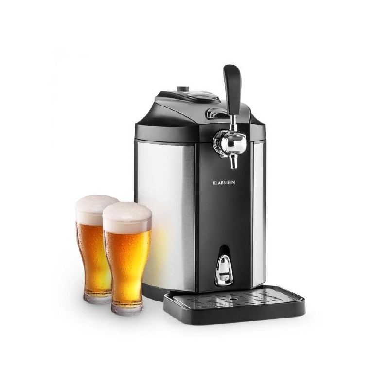 Najväčšie výhody: Univerzálne výčapné zariadenie s CO2 kartušovým tlakovým systémom pre zážitok z čapovaného piva doma Vhodné pre všetky 5-litrové súdky Integrované termoelektrické chladenie piva: chladenie na 2-12 °C Štýlový dizajn s čapovacou pákou a s telom z leštenej ušľachtilej ocele Vrátane adaptéra pre Heineken súdky a tiež 3 CO2 kartuší Vlastnosti: Zapnutie/vypnutie na pravej strane zariadenia Chladiaci systém vďaka termoelektrike s tichou prevádzkou: 38 dB (A) (vonkajší hluk: 25 dB (A)) Doba chladenia: cca 19 - 21 hodín (pre chladenie z izbovej teploty na približne 4 °C - odporúčame predchladenie) Nastaviteľný tlak CO2 LED displej pre teplotu piva Jednoduchá voľba teploty s tlačidlami +/- 6 voliteľných teplôt chladenia: 2, 4, 6, 8, 10 a 12 °C Zlepšený výkon chladenia pridaním 0,8 l vody Odnímateľná a ľahko umývateľná odkvapkávacia miska Vrátane čistiacej vložky pre hygienické čistenie čapovacieho systému Napájanie: 220-240 V~/50-60 Hz Obsah zásielky: 1 x výčapné zariadenie 1 x miska na odkvapkávanie 3 x CO2 kartuša 1 x Heineken adaptér 1 x čistiaca vložka