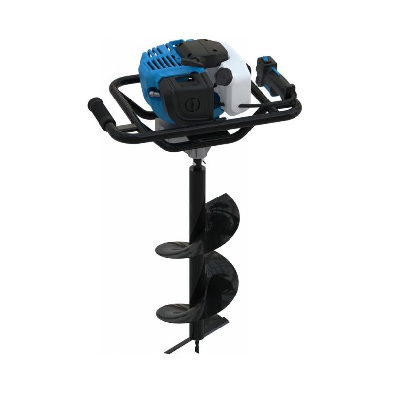 Benzínový zemný vrták s 2-taktným benzínovým motorom, pre využitie v lesníctve, záhradníctve a krajinnej architektúre. Vhodný na vŕtanie jednoduchých zemných otvorov, na osádzanie stĺpikov alebo vŕtanie základov. Ovládacie prvky kompaktné v rukoväti. Palivové čerpadlo Primer, odstredivá spojka. Vrátane vrtákov 100, 150, 200 mm.