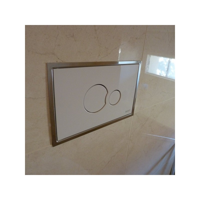 SANIT - ovládacie tlačidlo zápustné SK706 pre WC nádrže INEO (bowden) alpská biela/ nerez,VÝHODY: - splachovacie tlačidlo prilieha tesne k obkladu, - presah nad obklad len 1 mm, - ľahká údržba vďaka odnímateľnému panelu bez skrutiek (magnetické uchytenie) - jednoduchá a rýchla montáž, - unikátna odtoková technológia: prenos tlaku prostredníctvom flexibilných lán ( bowdenov ) na vypúšťacie zariadenie, - intuitívna a rýchla montáž splachovacích tlačidiel vďaka inovatívnej káblovej technológii s bajonetovým spojom, - úspora vody vďaka duálnemu systému (6/3 alebo 9 / 4,5l ),V BALENÍ: - predný ovládací panel s magnetickým uchytením biely, - ovládacie tlačidlá biele, - nerezový rámik na zapustenie, - základné telo tlačidla, - 2ks nastaviteľných držiakov a 2ks závitových skrutiek,POPIS: - farba tlačidiel a predného panelu: Alpská Biela, - rámik: leštená nerezová oceľ, - materiál tlačidiel a predného panelu: plast, - materiál rámika: leštená nerezová oceľ, - celkový rozmer tlačidla: šírka 181mm, výška 121mm, hĺbka 1mm(celkom 52mm), - bowdenová technológia na ovládanie splachovania, - inštalácia predná / horná, 2-činné, - pre nádrže s malým revíznym otvorom (š / v: 170/100 mm), - pre nádrže pod omietku SANIT typy: CC-122-S-UO-2V-2C, CC-121-S-FO-2V-2C, CC-121-S-UO-2V-2C, CC-150-S-UO-2V-2C, CC-150-S-FO-2V-2C, CC-120-S-FO-2V-2C, CC-200-S-FO-2V-2C, CC-80-S-FO-2V-2C, - Výrobok - Made in Germany, - Výrobca : Sanitärtechnik Eisenberg GmbH, Nemecko, Voliteľné príslušenstvo: - nerezový rámik zo šírkou 10mm (model.04.067.00..0000 ) Použiteľné pre WC tlačidlá SK706 plast a SG706 sklo v prípade nepresnej práce pri obkladaní.