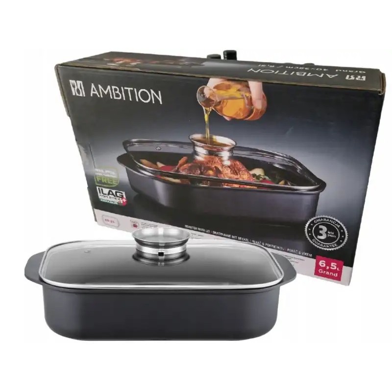 Pekáč AMBITION je kompatibilný so všetkými typmi varných platní vrátane indukcie, elektrických, plynových a keramických sporákov. Vďaka odolnosti proti vysokým teplotám ho môžete bez obáv použiť aj v rúre až do teploty 200°C. S objemom 6,5 litra je ideálny pre prípravu jedál pre celú rodinu či väčšiu spoločnosť.