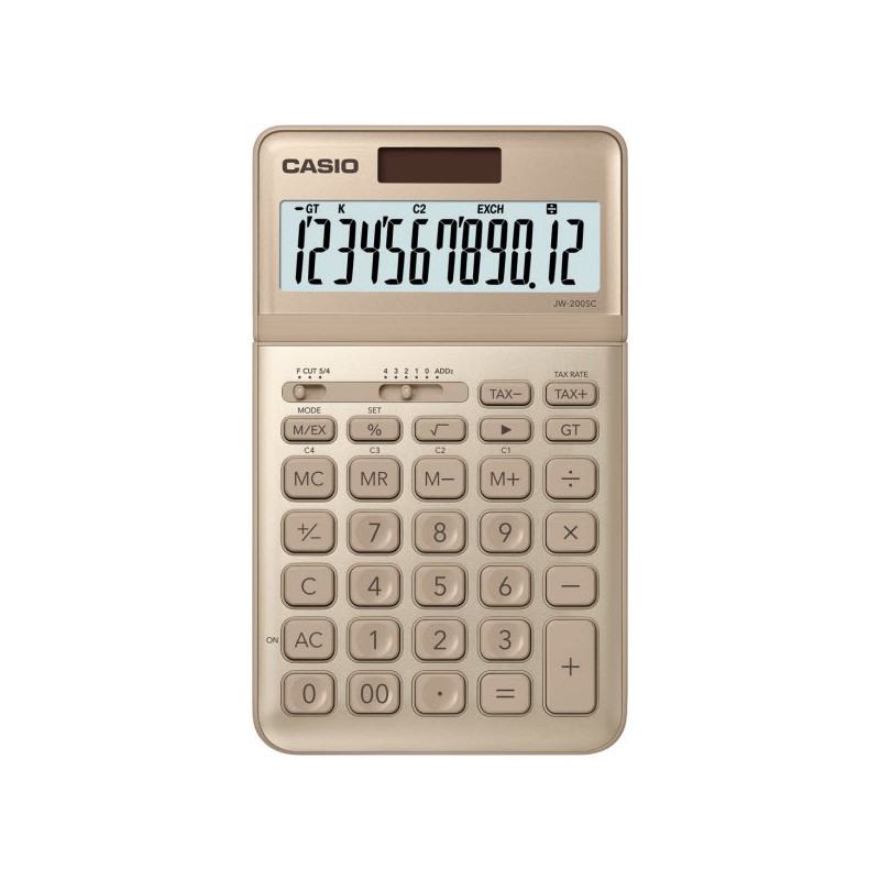12-miestny veľký LCD displej so zobrazením funkcií Profesionálny výpočet percent Výpočet zisku pomocou tlačidla % Prevody mien Výpočet DPH 4-tlačidlová pamäť Označenie radu - trojčislicovej čiarky Tlačidlo +/- zmeny znamienka Tlačidlo celkového súčtu GT Prepínač zaokrúhľovania (0, 1, 2, 3, 4, ADD2) Automatické zaokrúhľovanie (bez, orez, 5/4) Opravné tlačidlo Výpočet odmocniny Tlačidlo dvojitej nuly Vyrovnávacia pamäť Kovový farebný kryt Naklápací displej Vyrovnávacia pamäť Duálne napájanie Rozmery (vxšxd): 1,1 x 10,9 x 18,4 cm Hmotnosť: cca. 150 g Batéria: 1 x LR1130