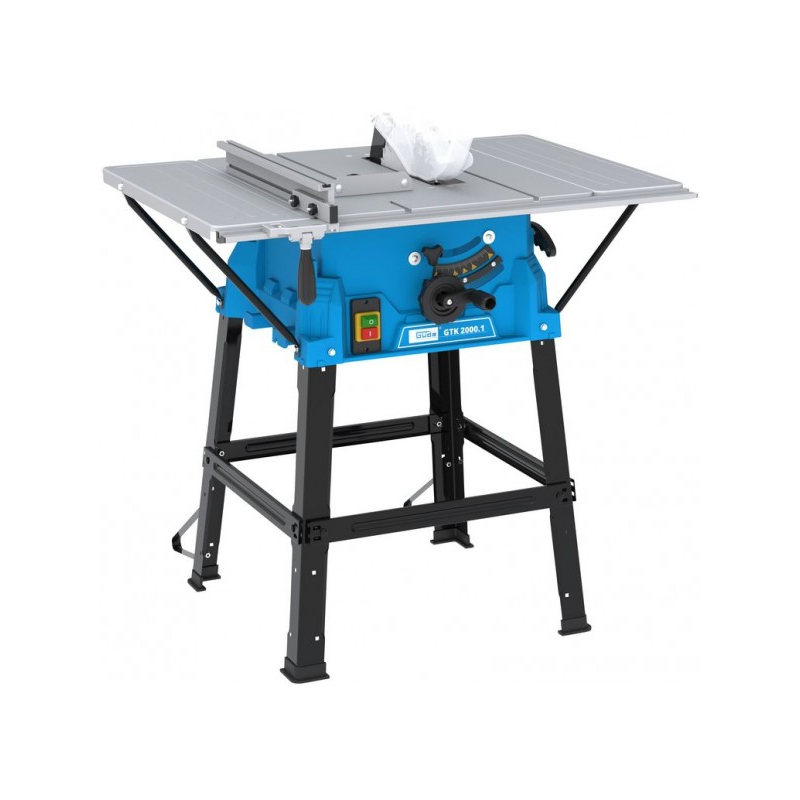 Stolová kotúčová píla s pracovným stolom z oceľového plechu, plastový kryt, podstavec z ocele. Dva rozšírenia, zošikmený doraz, paralelný doraz, posuvná tyč s držiakom, dorazová lišta s milimetrovou stupnicou. Možnosť nastavenia výšky s nastavením zošikmenia pomocou kľuky. Stolová kotúčová píla GTK 2000.1 Stolová kotúčová píla s pracovným stolom z oceľového plechu, plastový kryt, podstavec z ocele. Dva rozšírenia, zošikmený doraz, paralelný doraz, posuvná tyč s držiakom, dorazová lišta s milimetrovou stupnicou. Možnosť nastavenia výšky s nastavením zošikmenia pomocou kľuky. Zariadenie na navinutie napájacieho kábla, prípravok na uloženie paralelného dorazu. Pripojenie na odsávacie zariadenie. Vyhotovená podľa najnovších bezpečnostných noriem. Vrátane 1 ks pílového kotúča HM.