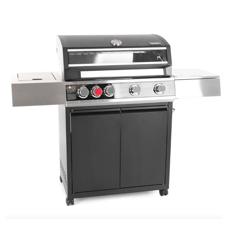 Plynový gril - HECHT CAMPANA 5 Užite si pohodlné a efektívne grilovanie s HECHT CAMPANA 5, špičkovým záhradným plynovým grilom vhodným na kryté záhradné plochy. Tento model ponúka štyri hlavné horáky a jeden bočný horák, vďaka ktorým ľahko pripravíte lahodné pokrmy pre celú rodinu aj priateľov.Liatinový rošt zaisťuje dokonalé rozloženie tepla a vysokú odolnosť proti opotrebovaniu. Integrovaný teplomer vám umožní ľahko kontrolovať teplotu vo vnútri grilu, zatiaľ čo transportné kolieska uľahčujú manipuláciu a presun.Gril je vybavený praktickými odkladacími plochami a uzatvárateľnou skrinkou, kde môžete skladovať príslušenstvo alebo plynovú fľašu.Vlastnosti4 hlavné horáky + 1 bočný horák Celkový výkon horákov: 16,5 kW Liatinový rošt pre rovnomerné rozloženie tepla Integrovaný teplomer pre presné riadenie teploty Transportné kolieska pre ľahké premiestnenie Praktická skrinka s dvierkami na uloženie príslušenstva Technické parametreRozmery grilu: 139,5 × 54,5 × 114 cm Rozmery roštu: 71 × 41,5 cm Hmotnosť: 46 kg