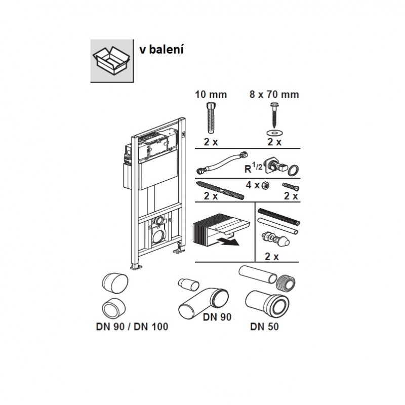 - Pripojovacia sada pre WC DN90 ((priemer 90) / 180 mm, kompletná,