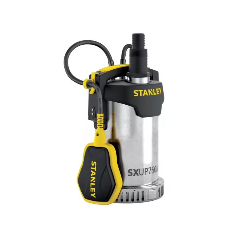 Ponorné čerpadlo Stanley SXUP750XCE Toto ponorné čerpadlo z nerezovej ocele od spoločnosti STANLEY je vhodné na čerpanie čistej vody. Je kompaktný a tiché a je ideálny na čerpanie čistej vody v domácnosti. Teleso čerpadla z nerezovej ocele je vysoko odolné a ľahko sa čistí.Použitie: Čerpadlo je vhodné pre čerpanie vody z vodovodnej siete: Čerpanie vody z cisterien Odčerpávanie a vysúšanie zaplavených miestností Čerpanie vody zo studní a bazénov Najdôležitejšie vlastnosti: Kompaktná konštrukcia Dodávaný plavákový spínač umožňuje rôzne aplikácie v normálnom ponornom režime alebo v automatickom režime Tri tlakové prípojky s rôznymi priemermi pre rôzne prietoky Odolné puzdro z nerezovej ocele odolné proti korózii Štíhle prevedenie pre obmedzené priestorové podmienkyVýkon 750 W Napájacie napätie 230 V ~ 50 Hz Max. prietok 11000 l/h Max. výtlak 8,5 m Pracovný tlak 0,85 bar Max. teplota vody 35 °C Ochrana motora IP X8 Max. hĺbka ponoru 7 m Zostatková hladina vody 23 mm Max. veľkosť častíc O 5 mm Priemer prípojky 1 - 1,25 - 1,5” Dĺžka kábla 10 m Netto hmotnosť 5,90 kg Vonkajšie rozmery 170 x 170 x 280 mm