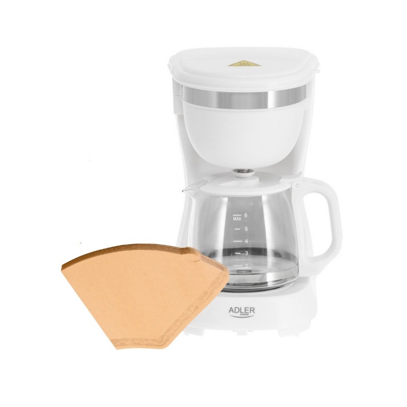 Skladá sa z: - kávovar ADLER AD4381biely prekvapkávací - filter kávový č.2- 100ks /bal KOMACharakteristika a technické údaje:Prekvapkávací kávovar Určený na prípravu mletej kávy Kompaktné rozmery – nezaberá veľa miesta na kuchynskej linke Funkcia udržiavania teploty 40 minút Objem kanvice: 0,6 litra Sklenená kanvica s ergonomickou rukoväťou Systém proti odkvapkávaniu Nádržka na vodu s ukazovateľom hladiny vody Odnímateľný opakovane použiteľný umývateľný nylonový filter Ochrana pred prehriatím Funkcia automatického vypnutia po 40 minútach Podsvietený spínač Ohrevná doska, ktorá udržiava kávu teplú Materiál puzdra: plast Dĺžka napájacieho kábla: 74 cm Výkon: 600 W Napájanie: 220 V – 240 V, 50 Hz / 60 Hz Veľkosť produktu: 14,7 x 19 x 25,5 cm Hlavné výhody: - Kompaktný prekvapkávací kávovar na mletú kávu s výkonom 600 W. - Sklenená kanvica s objemom 0,6 litra – ideálna na niekoľko šálok kávy. - Ergonomická rukoväť kanvice pre pohodlné nalievanie. - Funkcia udržiavania teploty – káva zostane teplá až 40 minút. - Systém proti odkvapkávaniu – zabraňuje rozliatiu pri vyberaní kanvice. - Nádržka na vodu s ukazovateľom hladiny pre presné naplnenie. - Vyberateľný opakovane použiteľný nylonový filter, kompatibilný s papierovými filtrami č. 1. - Automatické vypnutie po 40 minútach pre vyššiu bezpečnosť. - Podsvietený vypínač pre jednoduché ovládanie. - Ochrana proti prehriatiu pre bezpečné používanie. - Kompaktné rozmery: 14,7 × 19 × 25,5 cm – šetrí miesto na kuchynskej linke.
