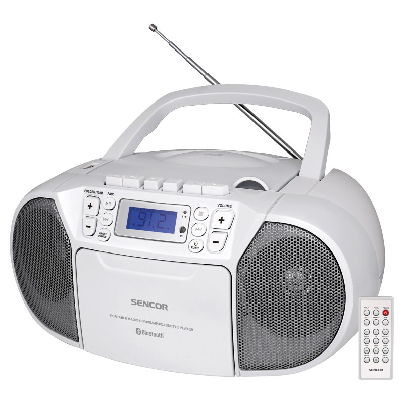 Prenosné rádio s CD prehrávačom SENCOR SPT 3907W v elegantnom bielom prevedení je ideálnym riešením pre milovníkov hudby, ktorí ocenia kombináciu klasických a moderných funkcií. Tento všestranný hudobný systém spája v sebe tradičný FM rádioprijímač, CD prehrávač a moderné bezdrôtové pripojenie cez Bluetooth, čo vám umožní vychutnať si obľúbenú hudbu z rôznych zdrojov.