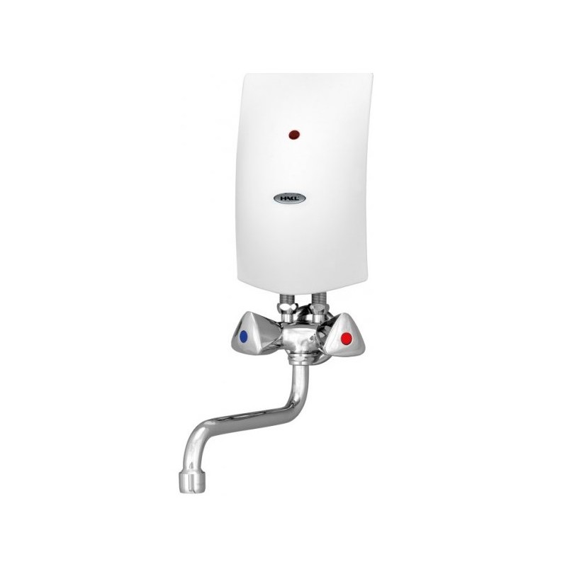 Pre jednoduchší nákup je el. prietokový ohrievač vody HAKL PM-B SET dodávaný spolu s vodovodnou beztlakovou nástennou klasickou batériou HAKL, s dĺžkou výtokového ramienka 20 cm.