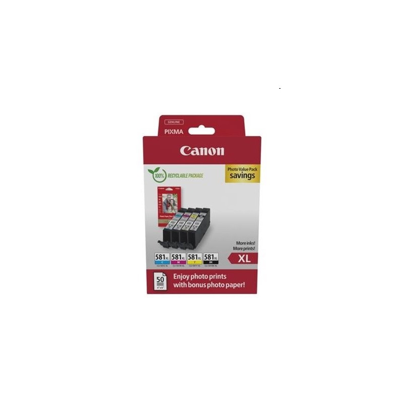 Popis výrobku Canon CLI-581XL C/M/Y/BK Photo Value Pack - 4-balenie - Vysoká výťažnosť - čierna,žltá,azúrová,purpurová - originál - Sada atramentový zásobník / papier Typ výrobku Sada atramentový zásobník / papier Technológia tlače Trysková Farba tlače Čierna,žltá,azúrová,purpurová Kapacita 8.3 ml Výnosnosť kazety Vysoká výťažnosť Funkcie kazety Canon ChromaLife100 Zahrnuté množstvo 4-balenie Kompatibilná s PIXMA CANON PIXMA TS8251, CANON PIXMA TS8252, CANON PIXMA TS8300 SERIES, CANON PIXMA TS8352, CANON PIXMA TS9100 SERIES, CANON PIXMA TS9155, CANON PIXMA TS92, CANON PIXMA TS9500 SERIES, CANON PIXMA TS9540, CANON PIXMA TS9541C, CANON PIXMA TS8350 SERIES, CANON PIXMA TS8351, CANON PIXMA TS9150, CANON PIXMA TS9550, CANON PIXMA TS9551C, CANON PIXMA TS8051, CANON PIXMA TS8050 SERIES, CANON PIXMA TS8040, CANON PIXMA TS8053, CANON PIXMA TS8052, CANON PIXMA TS8020 SERIES, CANON PIXMA TS8000 SERIES, CANON PIXMA TS8350, CANON PIXMA TS8351A, CANON PIXMA TS8352A, CANON PIXMA TS8350A, CANON PIXMA TS8300, CANON PIXMA TS9120, CANON PIXMA TS9540 SERIES, CANON PIXMA TS9551, CANON PIXMA TS9520, CANON PIXMA TS9521, CANON PIXMA TS9521C, CANON PIXMA TS9551CA, CANON PIXMA TS9540A, CANON PIXMA TS9541, CANON PIXMA TS9550A, CANON PIXMA TS6320, CANON PIXMA TS6300 SERIES, CANON PIXMA TS6251, CANON PIXMA TS6250, CANON PIXMA TS6241, CANON PIXMA TS6240, CANON PIXMA TS6220, CANON PIXMA TS6200 SERIES, CANON PIXMA TS6151, CANON PIXMA TS6150, CANON PIXMA TS6100 SERIES, CANON PIXMA TR8650, CANON PIXMA TR8620, CANON PIXMA TR8600 SERIES, CANON PIXMA TR8550, CANON PIXMA TR8500 SERIES, CANON PIXMA TR7650, CANON PIXMA TR7560, CANON PIXMA TR7550, CANON PIXMA TR7520, CANON PIXMA TR7500 SERIES, CANON PIXMA TS6350, CANON PIXMA TS6350 SERIES, CANON PIXMA TS6350A, CANON PIXMA TS6351, CANON PIXMA TS6351A, CANON PIXMA TS8100 SERIES, CANON PIXMA TS705, CANON PIXMA TS705A, CANON PIXMA TS8120, CANON PIXMA TS8150, CANON PIXMA TS8151, CANON PIXMA TS8152, CANON PIXMA TS8200, CANON PIXMA TS8200 SERIES, CANON PIXMA TS8220, CANON PIXMA TS8240, CANON PIXMA TS8241, CANON PIXMA TS8242, CANON PIXMA TS8250