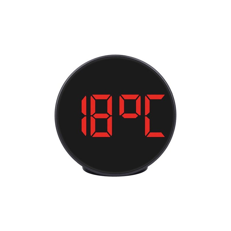 Digitálny budík s LED displejom a teplomerom. Tento moderný budík zobrazuje čas a teplotu na LED displeji s možnosťou prepínania medzi jednotkami °C/°F. Má tri úrovne jasu a nočný režim, ktorý automaticky znižuje jas počas nastaveného časového intervalu. Jednoduché nastavenie budíka s možnosťou jeho vypnutia zabezpečuje pohodlné používanie. Napája sa 3× AAA batériami alebo prostredníctvom DC 5V.budík s LED displejom zobrazujúcim čas a teplotu budík s možnosťou nastavenia a vypnutia možnosť prepínania jednotiek teploty: °C / °F rozsah merania teploty: 0°C – 50°C (32°F – 122°F) 3 úrovne jasu LED displeja nočný režim – automatické zníženie jasu počas nastaveného časového intervalu napájanie batéria: 3× AAA (1,5V) sieťové napájanie: DC 5V (s prúdom nad 300mA) farba čierna