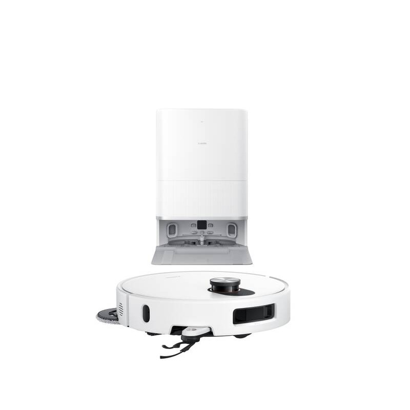 V balení nájdete všetko potrebné pre okamžité použitie: robotický vysávač s predinštalovanou nádobou a príslušenstvom, All-in-One stanicu s nádržkami, náhradnú hlavnú kefu, bočnú kefu, dva mopové držiaky s podložkami a podrobný návod na použitie.