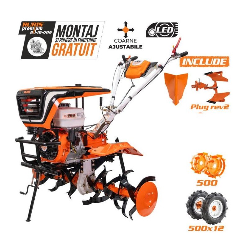 Profesionálny motorový kultivátor RURIS 915ACC, vybavený motorom s výkonom 15 HP a objemom valcov 420 ccm, dokáže bez problémov obrábať akýkoľvek typ pôdy bez ohľadu na jej tvrdosť, pričom dosahuje hĺbky až 360 mm s účinnosťou nad 1500 m2. /hAk máte rôzne záhrady, alebo veľké plochy pozemkov, múdrou voľbou je bezpochyby profesionálny motorový kultivátor RURIS 915ACC , ktorý oproti klasickým modelom výrazne zefektívni prácu so zemou.VlastnostiProfesionálny kultivátor RURIS 915ACC je vybavený 15 HP General Engine a kultivačnými nožmi s nastaviteľnou šírkou medzi 750 mm a 1100 mm.Výkonný motor, 2 rýchlosti vpred + 1 spiatočka a kužeľová prevodovka robia z profesionálneho motorového kultivátora RURIS 915ACC perfektný stroj na ťahanie prívesu, ktorý ľahko ťahá 1000 kg náklad.Radiaca páka je navyše umiestnená na úrovni rúk, čo umožňuje jednoduchšiu voľbu požadovanej rýchlosti.Ďalšou výhodou je fakt, že profesionálny kultivátor RURIS 915ACC je vybavené osvetľovacím systémom, ktorý umožňuje jeho použitie aj za zhoršenej viditeľnosti alebo po zotmení.Prevodová skriňa profesionálneho kultivátora RURIS 915ACC nevyžaduje špeciálnu údržbu a je použiteľná na všetky skupiny pôd. Je vyrobený z liatiny, odolný voči nárazom a mechanickému opotrebovaniu.Široká ponuka príslušenstvaProfesionálny motorový kultivátor RURIS 915ACC umožňuje pripevnenie širokého sortimentu príslušenstva ako sú: protizávažia, jednoradličný pluh, brány, otočný pluh, vyorávač zemiakov, kultivátor, sejačka, kovové alebo gumené kolesá, príves...Robustný a spoľahlivýŤažké pôdy je možné spracovať s RURIS 915ACC, ktorý je vybavený frézami vyrobenými z kvalitnej ocele, takže jeho pevnosť sa spája s praktickosťou.Unikátna konštrukcia profesionálneho kultivátora RURIS 915ACC je založená na prevodovom okruhu medzi prevodovkou a frézou a kužeľové prevody pomáhajú zvládnuť prácu na najtvrdších povrchoch v rekordnom čase. Jednoduchá údržbaĎalším dôležitým aspektom je ľahká údržba RURIS 915ACC , pretože je veľmi jednoduchá a nevyžaduje veľké technické znalosti.Jednoduchá manipuláciaManévrovateľnosť je daná konštrukciou navádzacieho a ovládacieho systému, ovládacie prvky sú umiestnené v ľahkom dosahu používateľa. So strojom sa ľahko manipuluje vďaka 3 rýchlostiam pojazdu (2 vpred + 1 vzad).RURIS 915ACC , hoci váži 146 kg, sa dá ľahšie ovládať vďaka nahor nastaviteľným kovovým madlám a gumeným rukovätiam určeným na tlmenie vibrácií generovaných motorom.Pluh na brzdu kultivátora v ceneModelRURIS 915KMotor RURISPracovný cyklus4 taktMaximálny výkon motora15 hpCilindrická kapacita420 ccmZapaľovanieElektronickéPáčka núdzového zastaveniaŠtandardná výbavaSpusteniemanuálneSystém osvetlenia LED svetloPrehadzovačkaPohodlne-rýchlePrenosKužeľové kolesá v olejiKryt prevodovkyNodulárna liatinaKáblový pohonMechanikarýchlosti2 dopredu + 1 dozaduPracovná šírka750-1100 mmPracovná hĺbka100-360 mmPalivo Bezolovnatý benzínKapacita nádrže6,5 lPriemerná spotreba 1,7 l/hObsah motorového oleja1,1Obsah prevodového oleja2,6 lPriemerná opracovaná plocha800-1500 m2/hHmotnosť bez príslušenstva146 kgZáruka na produkt24 mesiacov