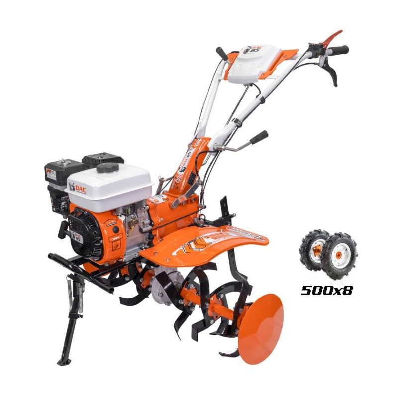 -Kultivátor DAC 185 + gumené kolesá 5,00-8 8,5 HP je spoľahlivý a odolný stroj vďaka 3 rýchlostiam pojazdu (2 vpred + 1 vzad)
