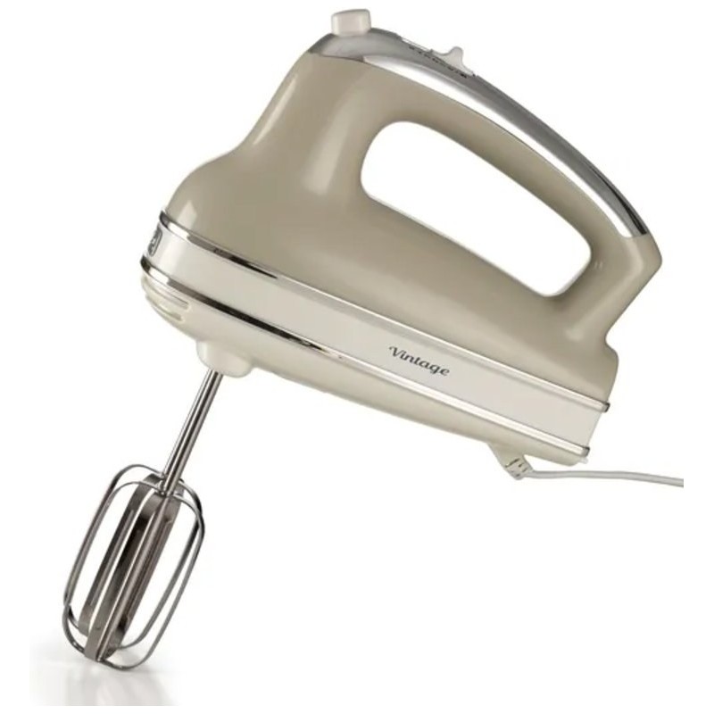 Výrobcovia venovali veľkú pozornosť ergonómii a pohodliu používania. Mixér má dokonale tvarovanú rukoväť, ktorá prirodzene zapadá do ruky a zabezpečuje pevný a pohodlný úchop aj pri dlhšej práci. Krémová vintage farebná úprava nie je len estetickým prvkom, ale dodáva mixéru nádych nostalgického šarmu 50. rokov, ktorý dokonale ladí s modernými aj klasickými kuchynskými interiérmi.