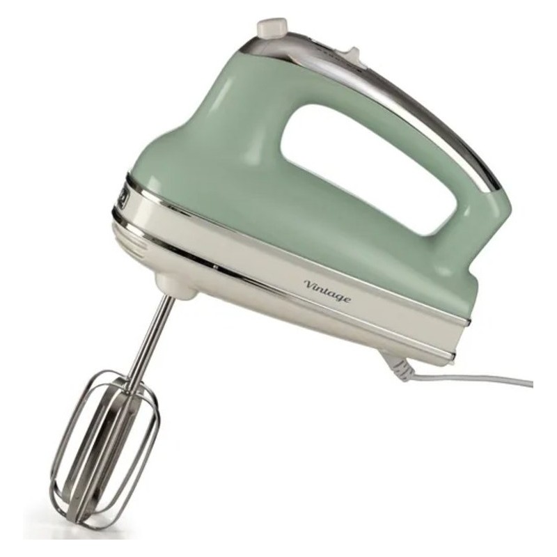 Vintage dizajn v krásnej zelenej farbe z mixéra robí nielen praktického pomocníka, ale aj dekoratívny prvok v kuchyni. Zaoblený tvar a retro línie pripomínajú kuchynské spotrebiče z 50. rokov, pričom ergonomické tvarovanie zabezpečuje pohodlné držanie aj pri dlhšom používaní.