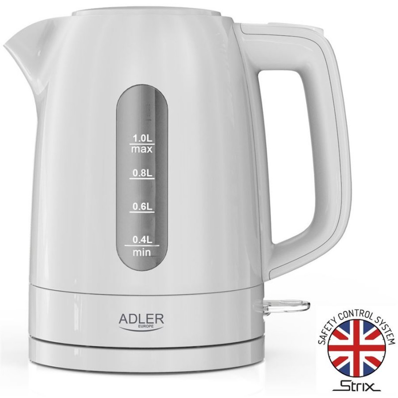 Kanvica ADLER AD1380 je vybavená renomovaným bezpečnostným ovládacím systémom STRIX, ktorý zaručuje spoľahlivú a bezpečnú prevádzku. Automatická ochrana proti prevareniu bez vody a automatické vypnutie po dosiahnutí bodu varu zabezpečujú, že sa nemusíte báť o bezpečnosť ani nadmernú spotrebu energie.
