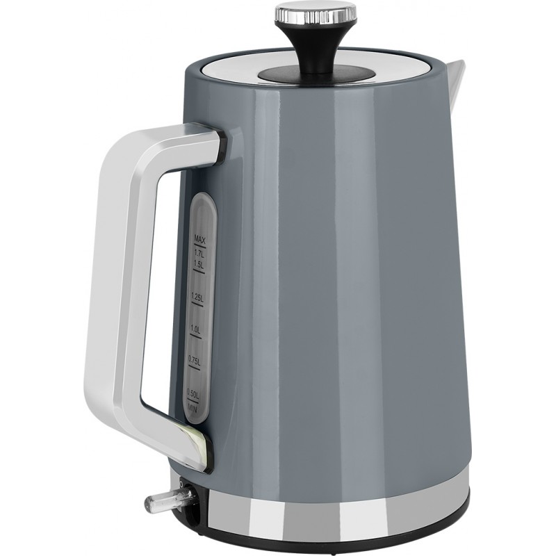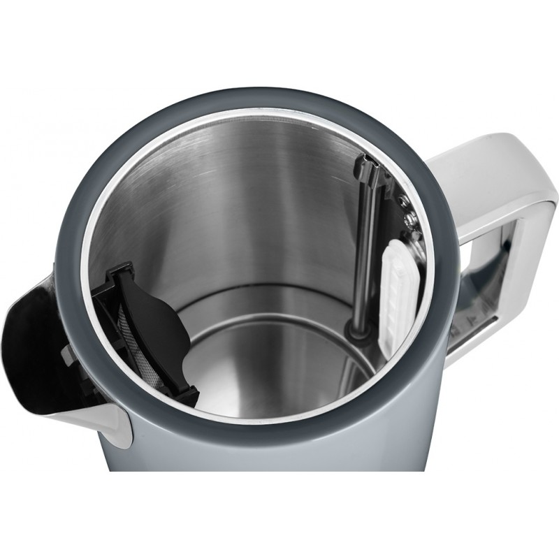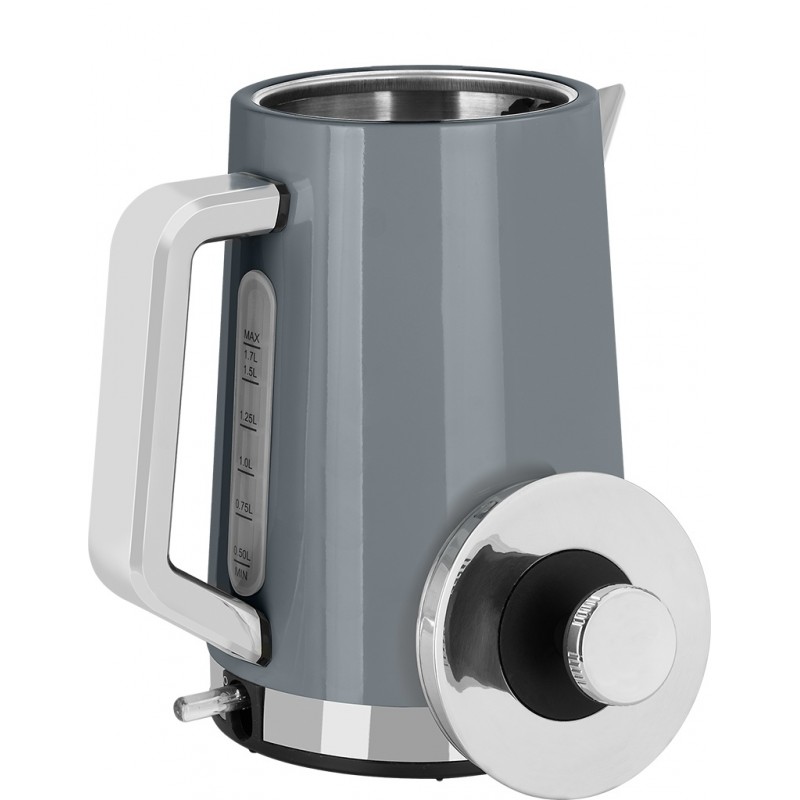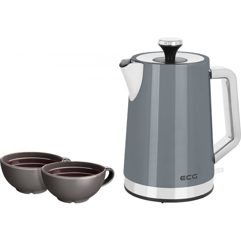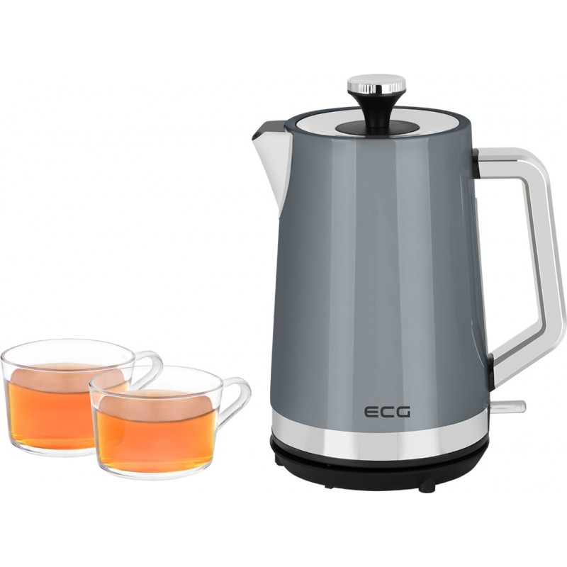 ECG RK 1766 Vintage Scuro Rýchlovarná kanvica Originálny šedý dizajn s nerezovými doplnkami Vyberateľný a umývateľný filter proti zvyškom vodného kameňa Praktický ukazovateľ vodnej hladiny Skryté výhrevné teleso pre ľahkú údržbu Optimálny objem 1,7 l Kvalitná povrchová úprava z nerezovej ocele Elegantné antikorové komponenty Skryté výhrevné teleso pre jednoduchú údržbu Vyberateľný a umývateľný filter proti zvyškom vodného kameňa Stredový konektor 360° otočná základňa s navíjaním kábla Ukazovateľ vodnej hladiny Svetelná signalizácia prevádzky Bezpečnostné zaistenie veka v uzavretej polohe Tepelne izolovaná rukoväť Automatické vypnutie (v prípade zapnutia bez vody / dosiahnutie bodu varu / vybratie kanvice zo základne) Integrovaná ochrana proti prehriatiu Menovité napätie 220–240 V ~ 50/60 Hz Menovitý príkon 1850 – 2200 W