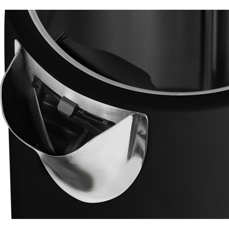 Kanvica je vyrobená z kvalitnej nerezovej ocele s antikorovou úpravou, ktorá zaručuje dlhú životnosť a odolnosť voči opotrebovaniu. Čierna farebná úprava v kombinácii s elegantným nerezovými detailmi dodáva spotrebiču vintage vzhľad, ktorý zaujme na prvý pohľad. Tepelne izolovaná rukoväť zabezpečuje bezpečné a pohodlné manipulovanie aj s plnou kanvicou vriacej vody.