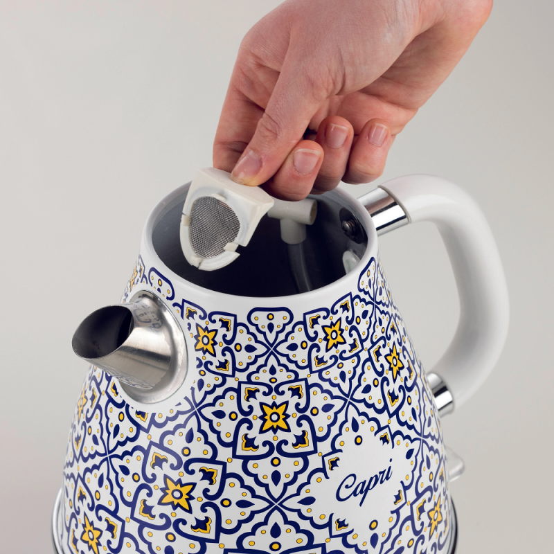 Vnútorný odnímateľný filter účinne zachytáva nečistoty a vodný kameň, čím zabezpečuje čistotu pripravenej vody. Filter sa jednoducho vyberie a umyje. Výhrevná špirála je strategicky umiestnená pod dnom kanvice, čo uľahčuje čistenie a zlepšuje efektivitu ohrevu.