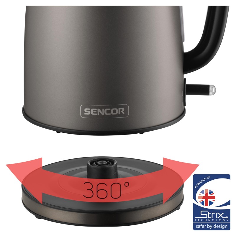 Revolučný 360° STRIX konektor umožňuje otáčanie kanvice v ľubovoľnom smere, čo ocenia ako praváci, tak ľaváci. Základňa s centrálnym konektorom je vybavená úložným priestorom na napájací kábel, takže môžete udržať kuchynskú linku vždy čistú a organizovanú.