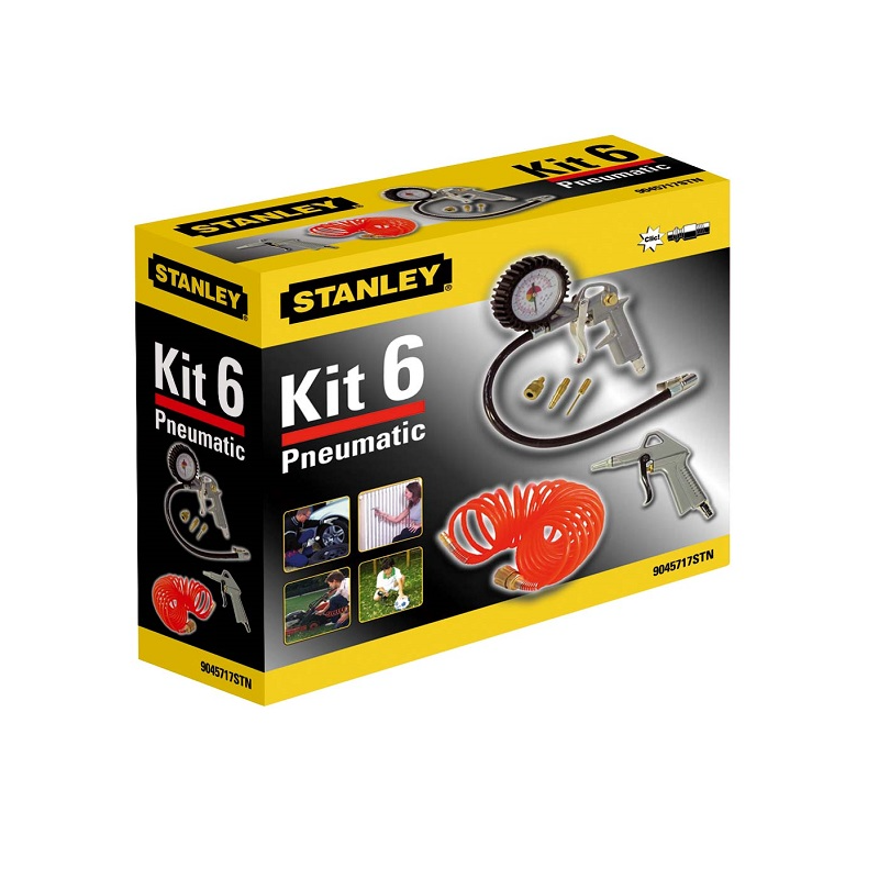 Univerzálna hustiacna pištoľ STANLEY v praktickej 6-dielnej súprave je ideálnym riešením pre profesionálov aj domácich majstrov. Táto kompletná sada obsahuje všetko potrebné pre efektívne hustenie pneumatík, fúkanie a čistenie v dielni či garáži.