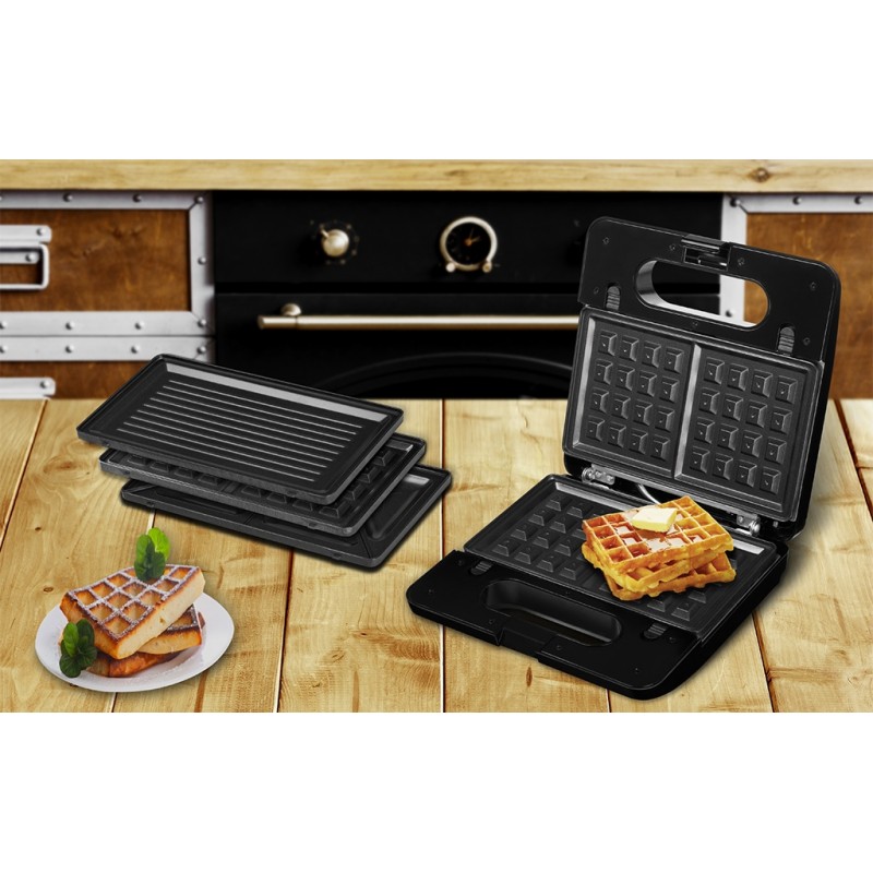 ECG S 3173 3in1 Triangle ponúka tri súpravy výmenných dosiek, vďaka ktorým si môžete každý deň pripraviť niečo iné. Sendvičové dosky vytvárajú chrumkavé trojuholníkové toasty, panini/zapekacie dosky sú ideálne na grilované sendviče a zapekané bagety, zatiaľ čo vafľovacie dosky vám umožnia pripraviť dokonalé domáce vafle na raňajky či desiatu.