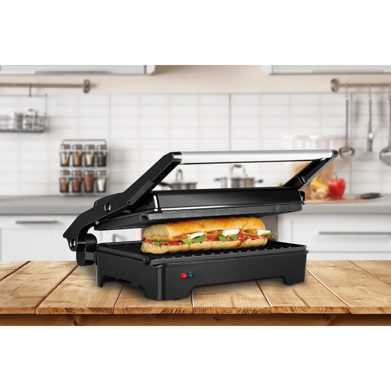 Grilovať môžete prakticky čokoľvek - od klasických panini sendvičov cez grilovanú zeleninu až po šťavnaté steaky či rybí filé. Nepriľnavá úprava plôch zabezpečuje nielen zdravšie varenie, ale aj jednoduché čistenie po použití.