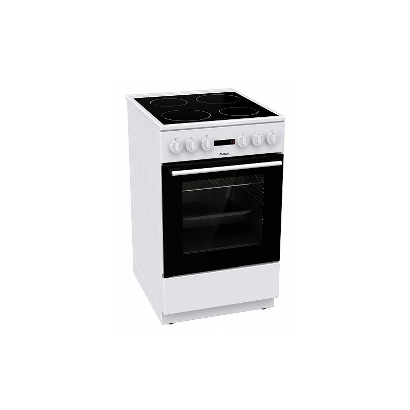 Elektrický sporák s klasickou rúrou / 4 HiLight varné zóny / ukazovateľ zvyškového tepla varných zón / klasická rúra – 3 spôsoby ohrevu / ECO CLEAN – funkcia na čistenie rúry / objem rúry 74 l / vedení v rúre – drôtené vodidlá plechov / energetická trieda – A / biela farba / príslušenstvo: 1 x rošt, 1x XXL hlboký pekáč