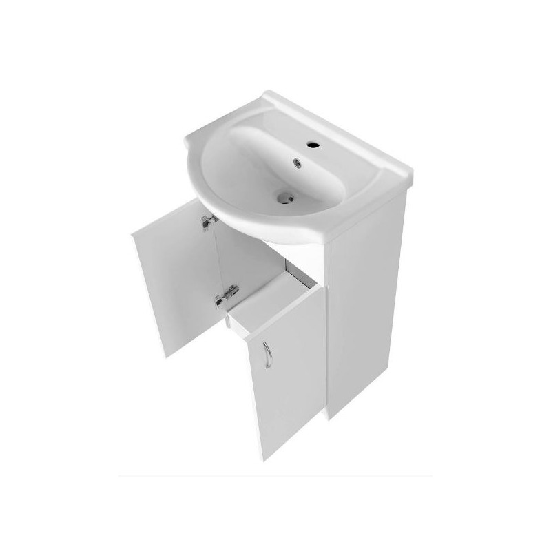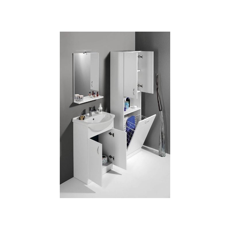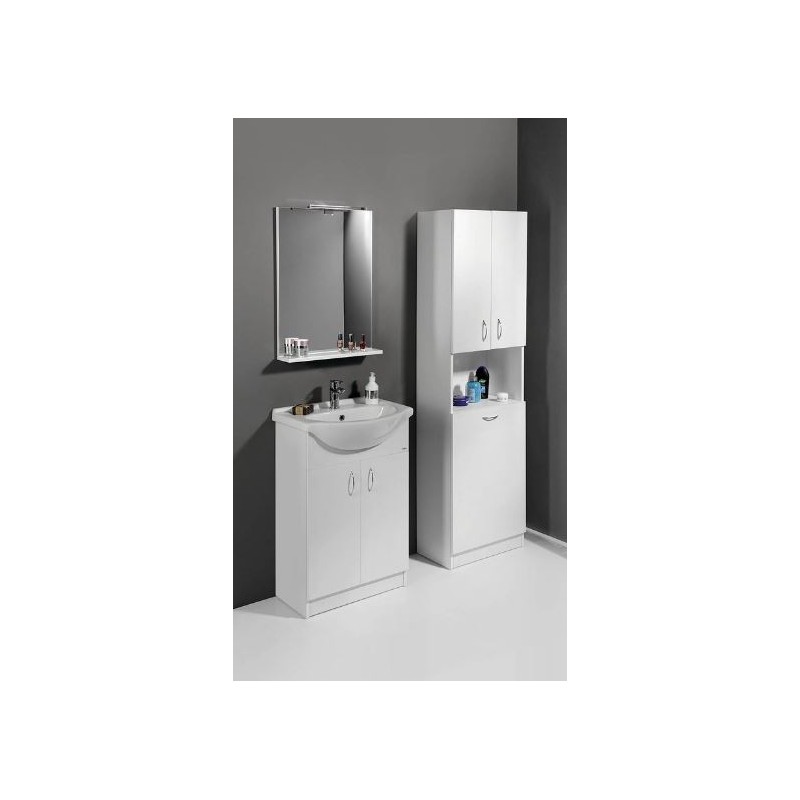 Kúpeľňový nábytok z bieleho lamina Aqualine SIMPLEX ECO je najjednoduchšie riešenie pre Vašu kúpeľňu. Umývadlová so zabudovaným umývadlom je navrhnutá tak, aby poskytla maximálny priestor a zároveň odolala vlhkým podmienkam v kúpeľni. Majte hygienické potreby vždy poruke. V dolnej časti za dvojkrídlovými dvierkami je umiestnený ukladací priestor, kde môžete schovať čistiace prostriedky a iné veci. Pochrómované držadlá uľahčujú manipuláciu s dvierkami. Zabudované keramické umývadlo taktiež poskytuje veľkorysé odkladacie plochy napríklad pre mydelničku či dávkovač mydla.