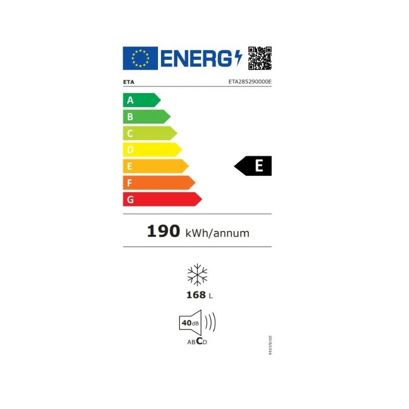 Mraznička je zaradená do energetickej triedy E, čo predstavuje štandardnú spotrebu pri zachovaní optimálneho mraziaceho výkonu. Spotrebič dokáže efektívne zmraziť a udržiavať teplotu vašich potravín, pričom sa stará o ich kvalitu a čerstvosť.