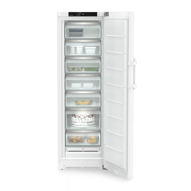 Výkon a spotřebaEnergetická třída D Spotřeba energie za 24 h 0,545 kWh / 24 h Spotřeba energie za rok 199 kWh/a Klimatická třída SN-T Úroveň hluku 35 dB Třída emisí hluku B Příkon 1,3 A 264,6 W Napětí 220-240 V ~ Frekvence 50/60 HzOvládání a funkceŘízení Monochromatický LC displej, dotykový displej Počet teplotních zón 1 Počet regulovatelných chladicích okruhů 1 VarioTemp ne Teplomer Mrazicí část SuperFrost Nastavitelné na spotřebiči a v aplikaci Dveřní alarm mrazicí části Nastavitelné na spotřebiči a v aplikaci IceCubeTimer ne NightMode ne Zámek displeje Nastavitelné na spotřebiči Ovládání Dotyk Řešení připojení k síti * Možnost dodatečné montážeMrazící částRozsah teploty mrazící cást -15 °C až -28 °C Technologie chlazení NoFrost Poloha mrazící cásti ne Proces odmrazování automatický Mrazicí kapacita 24 h podle GS ** 18,00 kg / 24 h Zásuvky v mrazící cásti 7 z toho na teleskopických výsuvech 0 FrostSafe Zcela uzavřené zásuvky s průhlednou přední stěnou Systém výsuvných zásuvek v mrazicí části Integrované vedení zásuvek Zásuvka s komfortní funkcí naklápění ano Vnitrní osvetlení mrazící cást ne VarioSpace ano SpaceBox ano IceMaker Ne Osvětlení přihrádky IceMaker ne EasyTwist-Ice ne IceTower ne Miska na ledové kostky Miska na kostky ledu Počet misek na kostky ledu 1 Počet vodních filtrů 0 Počet akumulátorů chlazení 0 Zmrazovací podnos 1 Pocet hvezdicek 4 Doba skladování při poruše podle GS ** 16 hDesign a materiályInteriorFit ano Materiál dveří Ocel Materiál přestavitelných polic v mrazicí části ne Barva bílá Barva dveří bílá Materiál bočnic ocel Madlo Zapuštěné madlo (oboustranné, svislé, průběžné)Konstrukce a instalaceEasyOpen ano Pomocné zavírací ano Smer otevírání dverí Pravý vyměnitelný Změna strany otvírání dveří Lze oboustranně Úhel otevrení dverí 115° Dveřní těsnění Vyměnitelné Výškově nastavitelné nohy 2 Transportní madla vpredu a vzadu Transportní kolecka vzadu ano Odvetrání Přední větrání Typ konektoru Euro Přívodní kabel (délka) 2.100 mmSpecifikaceObjem mrazicích přihrádek 278 l Z toho 4hvězdičková mrazící část 277,9 l Vnější rozměry výška / šířka / hloubka 185,5 / 59,7 / 67,5 cm Výška / šířka / hloubka (s obalem) 1.929,0 / 615,0 / 767,0 mm Váha (bez obalu) 66,1 kg Váha (s obalem) 71,5 kg Celkový objem *** 277 l