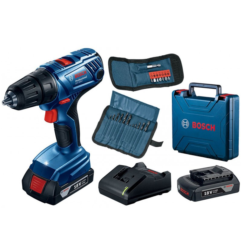 GSR 180-LI Professional - Akumulátorový vŕtací skrutkovač Silný krútiaci moment 55 Nm poskytuje výkon potrebný na základné vŕtacie práce Spoľahlivosť, odolnosť a profesionálna kvalita na každodenné používanie vďaka celokovovej prevodovke a elektronickej ochrane článkov Profesionálny dizajn s bezkľúčovým 13 mm skľučovadlom umožňuje kvalitnú prácu Disponuje aj 2 rýchlosťami, funkciami ako automatická aretácia (Autolock), LED svetlom, Li-ion akumulátorom a zmenou smeru otáčania doprava – doľava Súčasťou tohto variantu 2× akumulátor GBA 18V 2.0Ah (katalógové číslo 1 617 B00 0BJ) 23-dielna súprava vrtákov a skrutkovacích hrotov s držiakom Nabíjačka GAL 18V-20 Professional Kufor na prenášanie Technické parametre Ďalšie údaje Kapacita akumulátora* 2 Ah Napätie akumulátora 18,0 V Krútiaci moment (mäkký/tvrdý/max.)* 21/54/- Nm Voľnobežné otáčky (1. stupeň / 2. stupeň)* 0 – 500 / 0 – 1.900 ot/min Hmotnosť s akumulátorom* 1,6 kg Typ akumulátora Li-Ion Upínací rozsah skľučovadla, min/max 1,5 / 13 mm Počet stupňov krútiaceho momentu 20+1