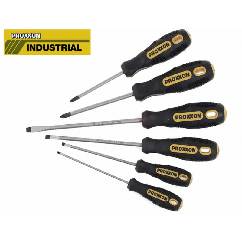 6 dielna sada profesionálnych skrutkovačov FLEX-DOT od nemeckej firmy Proxxon sada obsahuje: 4 ploché skrutkovače – veľkosti 3 – 4 – 5,5 – 6,5 2 krížové pozidrive skrutkovače – veľkosti PZ 1 a PZ 2 zobraziť viac