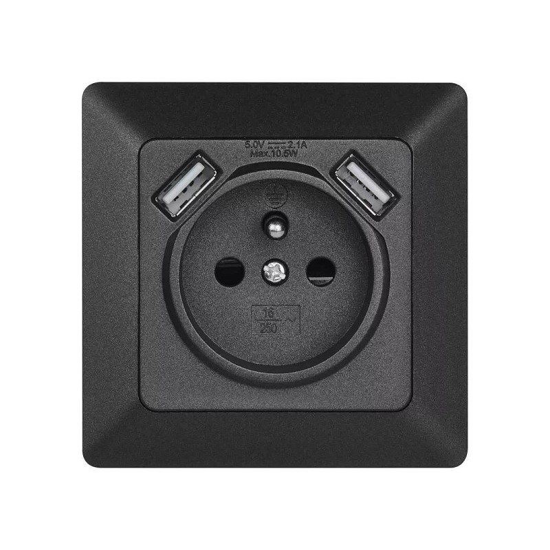 zásuvka jednonásobná s ochranným kolíkom a USB výstupom 2,1 A max.