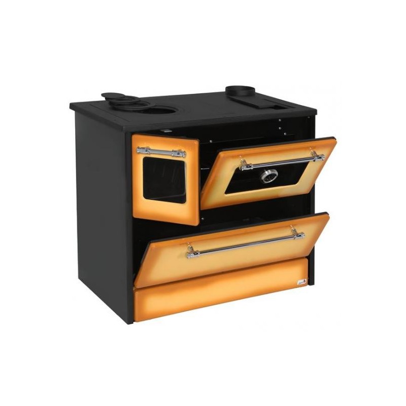 Sporák je vhodný na varenie, pečenie aj vykurovanie. Má jednoduchú obsluhu a úspornú prevádzku. Sporák disponuje varnými platňami, regulátorom prívodu vzduchu a prúdenia tepla, praktickými dvierkami ohniska a dvierkami rúry na pečenie. Varné platne a ohnisko sú vyrobené z liatiny. Praktická rúra na pečenie má dostatočnú šírku, a to 45 cm a na dvierkach sa nachádza praktický teplomer. Vyberateľný rošt v nej môžete vložiť na spodnú a strednú pozíciu. V sporáku sa tiež nachádza veľká časť na odkladanie dreva a nádoba na popolník.
