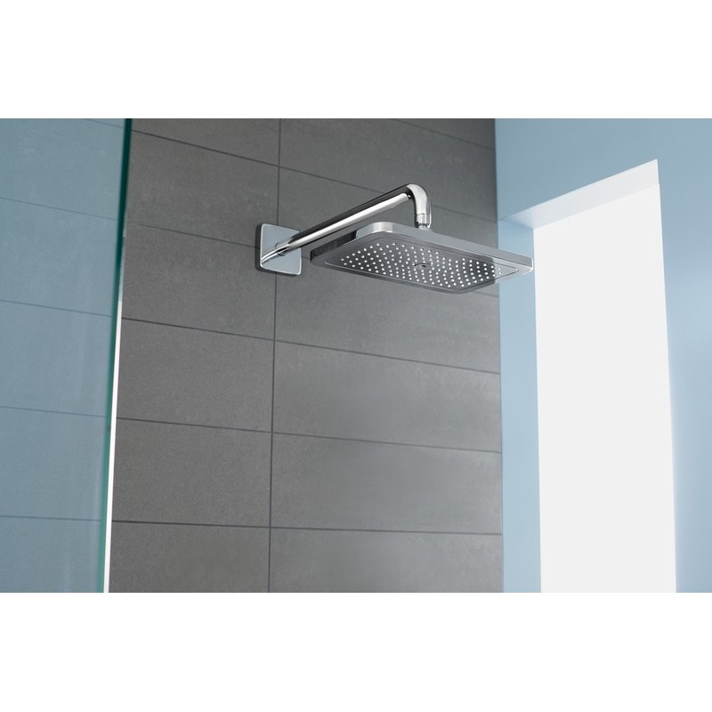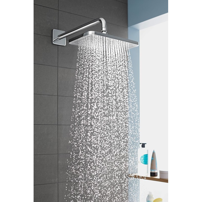 Moderný dizajn štvorcovej nástennej lišty a sprchového ramena s harmonicky zaoblenými líniami a plochami v lesklom chrómovom vyhotovení urobí z nástennej montáže atraktívny prvok každej sprchy. Lesklý chrómový povrch stabilného sprchového ramena z mosadze sa pritom dobre čistí a boduje aj svojou kvalitou a trvanlivosťou – pre dlhodobý lesk a neutíchajúcu radosť zo sprchy.