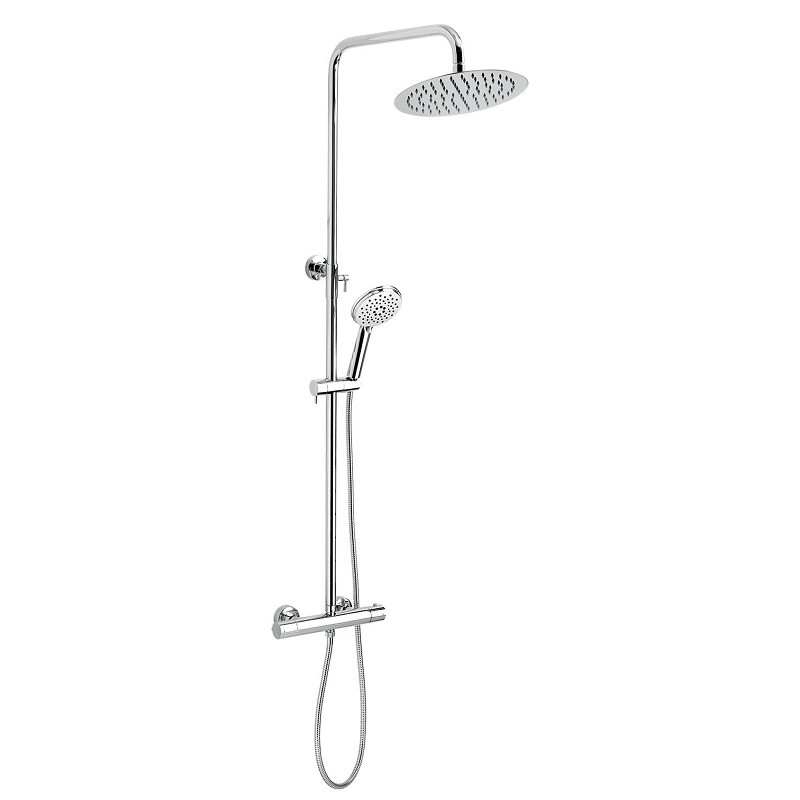 Prvotriedne chrómové prevedenie. Set obsahuje termostatickú batériu s rozostupom 150 mm. Súčasťou balenia je hlavová sprcha v SLIM DESIGN s priemerom 250 mm, kovová hadica 150 cm a 1-polohová ručná sprcha. Nastaviteľná výška setu je 890 - 1300 mm.