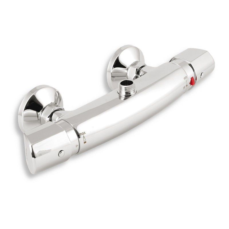 Kvalitná a odolná, termostatická kartuš KEROX so 7 ročnou zárukou. Prvotriedne chrómové prevedenie. Sprchová termostatická batéria s vrchným vývodom vody a s rozostupom 150 mm.