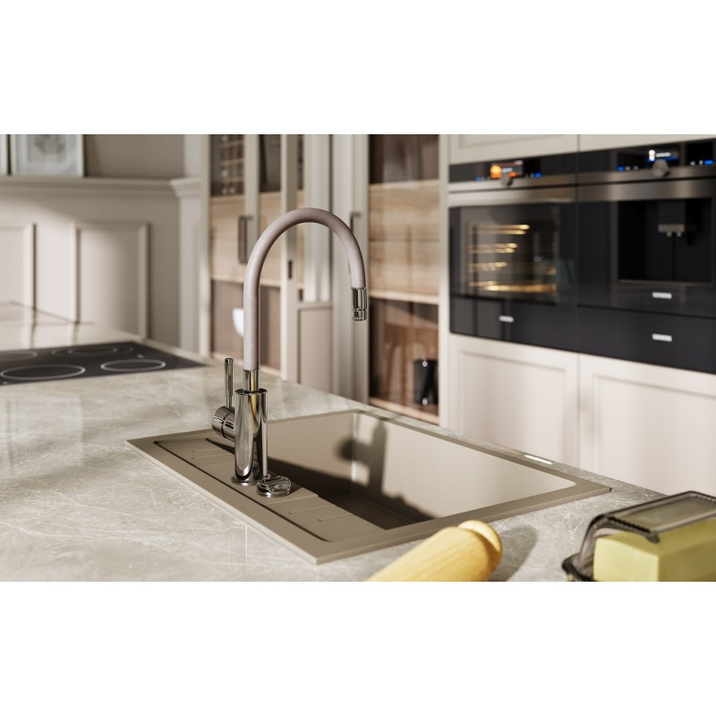 Drezová stojánková batéria s elastickým ramenom béžová-chróm