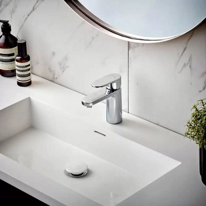 Vďaka jemnej elegancii a harmonickému dizajnu sa umývadlová páková batéria Vernis Blend 100 skvele hodí pre všetky umývadielka v kúpeľni alebo na toalete pre hostí. Najvyšší komfort: Medzera medzi výtokom a umývadlom ponúka veľa priestoru na pohodlné používanie (ComfortZone 100). Batéria Vernis Blend vnáša do kúpeľne taktiež nadčasový dizajn s osvedčenou používateľskou prívetivosťou od firmy hansgrohe a sú dostupné za atraktívnu cenu.