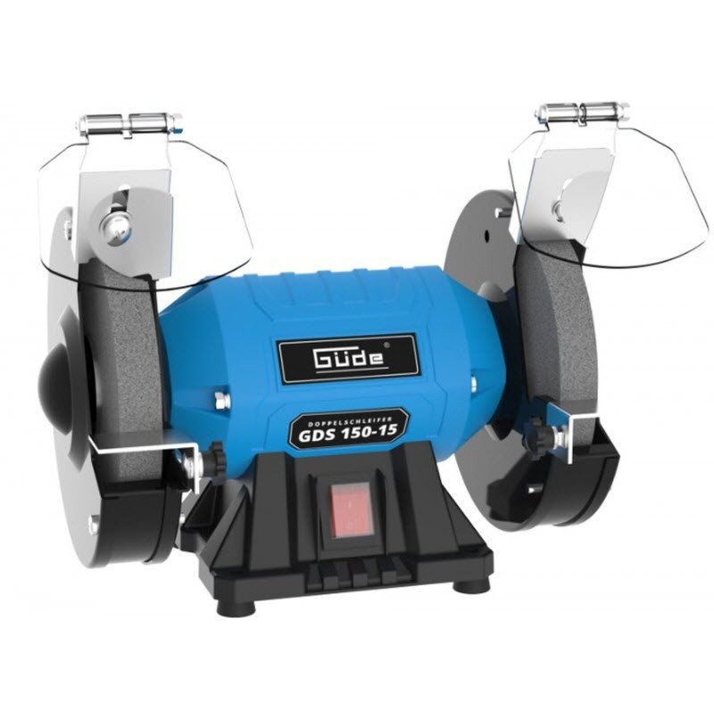 Stolová dvojkotúčová brúska s ochrannými krytmi proti iskrám, stabilná základňa, osi uložené v guľôčkových ložiskách, kondenzátorový motor, chod bez vibrácií. Polohovateľné pracovné opierky, brúsny kotúč na hrubé a jemné brúsenie. Stolová dvojkotúčová brúska GDS 150-15 Stolová dvojkotúčová brúska s ochrannými krytmi proti iskrám, stabilná základňa, osi uložené v guľôčkových ložiskách, kondenzátorový motor, chod bez vibrácií. Polohovateľné pracovné opierky, brúsny kotúč na hrubé a jemné brúsenie.