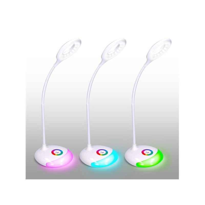 nabíjacia LED stolná lampička so stmievaním a atmosférickým podsvietením 256 farieb k podsvieteniu základne - možno využiť ako nočné svetielko stmievateľná - plynulé stmievanie dotykom prsta výkon: max. 5Wsvetelný tok: max. 300lm teplota svetla: 4000K (neutrálna biela) lampičku možno mať zapojenú v sieti alebo ju po nabití ľubovoľne prenášať doba svietenia na jedno nabitie: cca 3 hod. doba nabíjania: cca 4 hod. USB napájací kábel 100cm súčasťou vstupné napätie a prúd: 5V / min.500mA vstavaná batéria: Li-Ion 1200mAh lampičku možné nabíjať / napájať priloženým káblom napr. z USB konektora v notebooku, počítači, monitoru, alebo pomocou lubovoľného USB sieťového adaptéra napr. DC36 (adaptér nie je súčasťou) ohybné rameno farba: biely lesk energetická trieda: A+ LED zdroj nemožno meniť materiál: ABS rozmer: 116x81x410mm