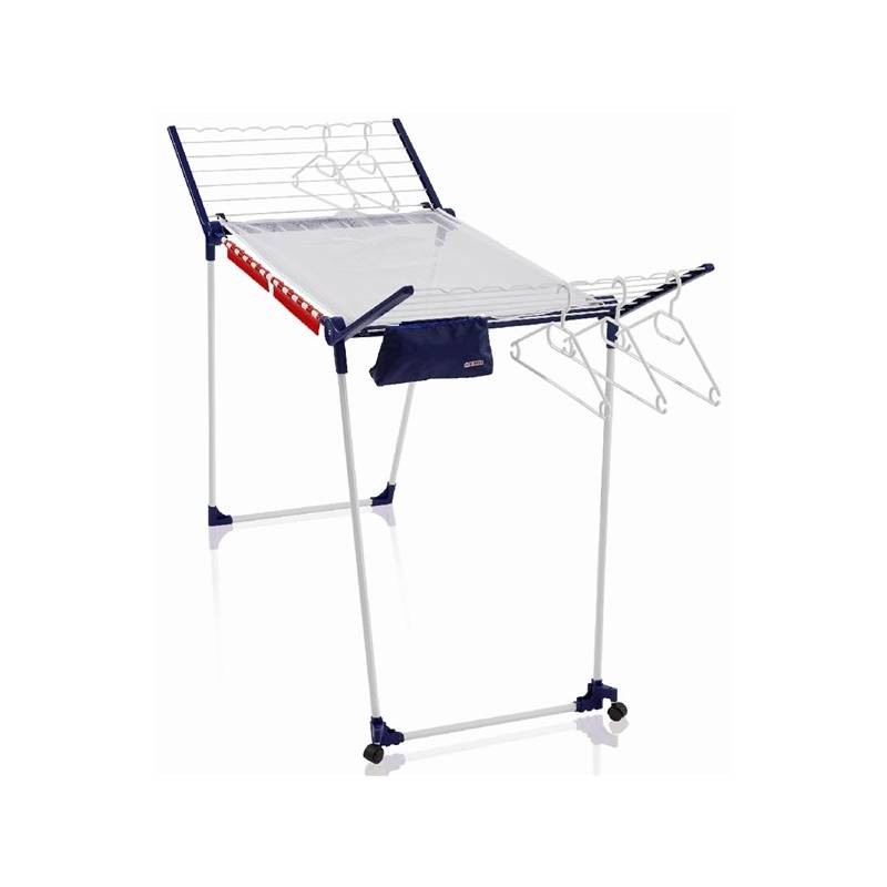 Sušiak disponuje praktickými rozkladacími ramenami s vyvýšenými bočnicami, ktoré sú ideálne pre zavesenie dlhých kusov odevu ako sú šaty, nohavice či uteráky. Zvlnené okraje bočníc zabezpečujú pevné uchytenie ramienok, takže vaše oblečenie nebude padať. Konštrukcia z kovu a kvalitného plastu v elegantnom bielo-modrom prevedení zaručuje dlhú životnosť a vysokú odolnosť.