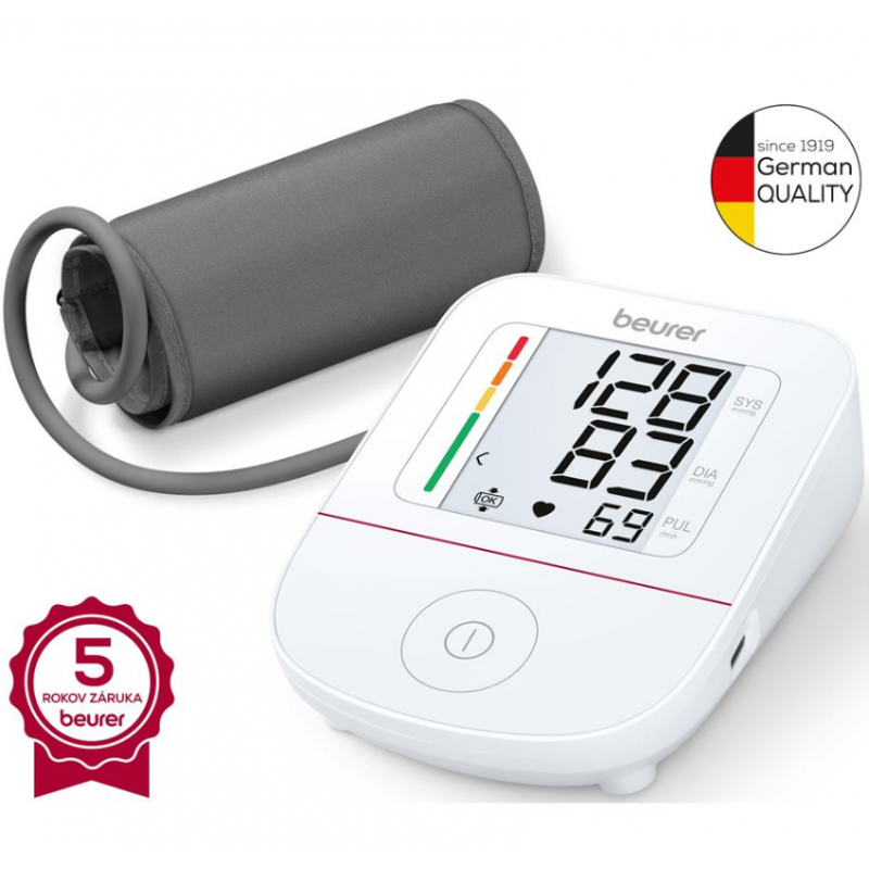 Jednoduché použitie pomocou jediného tlačidla S pripojením USB-C pre voliteľnú sieťovú prevádzku (adaptér nie je súčasťou balenia) Scan and Save: jednoduchý spôsob uloženia hodnôt krvného tlaku v aplikácii Plne automatické meranie krvného tlaku a pulzu na ramene Deflačná technológia Kontrola nasadenia manžety: Aby ste sa uistili, že manžeta je správne umiestnená na ramene Detekcia arytmie: deteguje a varuje pred možnými srdcovými arytmiami Indikátor rizika: Klasifikácia meraní pomocou farebnej stupnice Automatické vypnutie Indikátor výmeny batérie S manžetou pre obvod ramena od 22 - 42 cm Vrátane 4x 1,5 V AAA batérie Zdravotnícka pomôcka podľa nového nariadenia o zdravotníckych pomôckach (EÚ) 2017/745 (MDR) Rozmery produktu (DxŠxV): 120 x 90 x 40 mm Hmotnosť produktu: cca 318 g (bez batérií, s manžetou) Záruka: 5 rokov Ramenné tlakomery nemeckej spoločnosti Beurer sú uznávané pre ich presnosť, jednoduchosť použitia a cenovú dostupnosť a poskytujú kvalitu za dostupnú cenu každému, kto potrebuje kvalitný monitor krvného tlaku pre domáce použitie. Tlakomery Beurer sú určené na meranie a monitorovanie arteriálneho krvného tlaku na ramene. Meranie je veľmi jednoduché, vhodné úplne pre každého, doma i na cestách. Tlakomery Beurer sú prispôsobené prísnym požiadavkám a špecifikáciám smernice MDD 93/42 / EEC o zdravotníckych pomôckach a majú príslušnú značku CE. Sortiment ramenných tlakomerov Beurer je široký a pokrýva zariadenia od plne automatických jednoduchých modelov s jedným pamäťovým kanálom až po najkomplexnejšie moderné modely s duálnymi pamäťovými kanálmi a dotykovou obrazovkou. Zo širokého sortimentu si vyberie naozaj každý, presne podľa požiadaviek a okolností. Ramenné tlakomery Beurer môžu použiť ľudia všetkých vekových kategórií a môžu byť tiež veľmi užitočné pri starostlivosti o starších v domovoch dôchodcov. Ramenné tlakomery Beurer boli testované na presnosť a spoľahlivosť a boli označené značkou CE o zdravotníckych pomôckach podľa smernice MDD 93/42 / EEC o zdravotníckych pomôckach. Sú tiež v súlade s európskymi normami pre neinvazívne prístroje na meranie krvného tlaku EN1060-1 a EN1060-3. Tlakomery Beurer sú uznávané za najvyššiu kvalitu a presnosť na globálnom trhu zdravotnej starostlivosti. To je poctivá nemecká značka Beurer - prináša spoľahlivosť, presnosť, pohodlie a jednoduchosť použitia za prijateľnú cenu.Beurer - Najpredávanejšia značka tlakomerov na nemeckom trhu a druhá najpredávanejšia značka tlakomerov na svete.