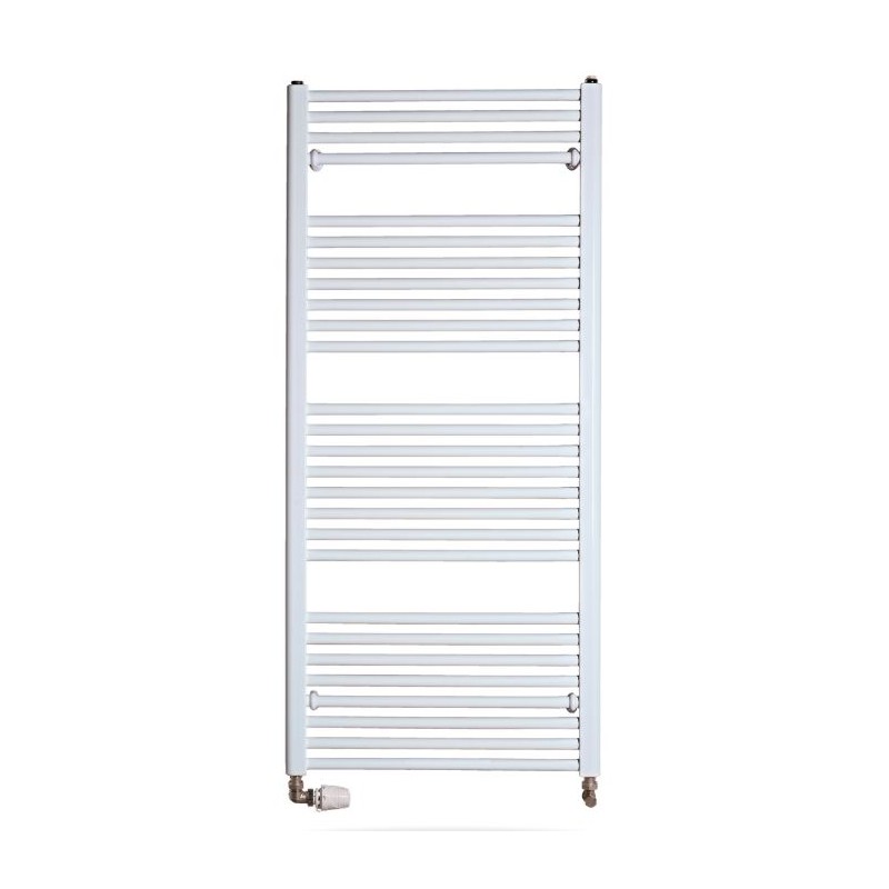 Biely kúpeľňový radiátor v rovnom vyhotovení používaný v kúpeľniach, WC. Je určený na vykurovanie a zároveň na sušenie uterákov.Rebríkové radiatory je možné doplniť elektrickou špirálou a využíva... zobraziť viac