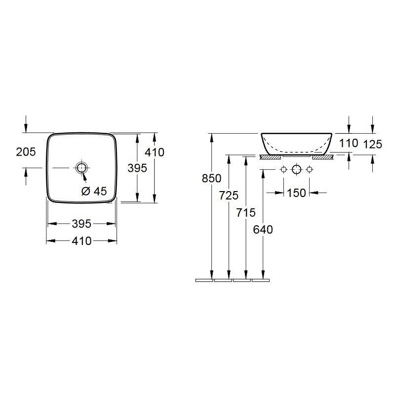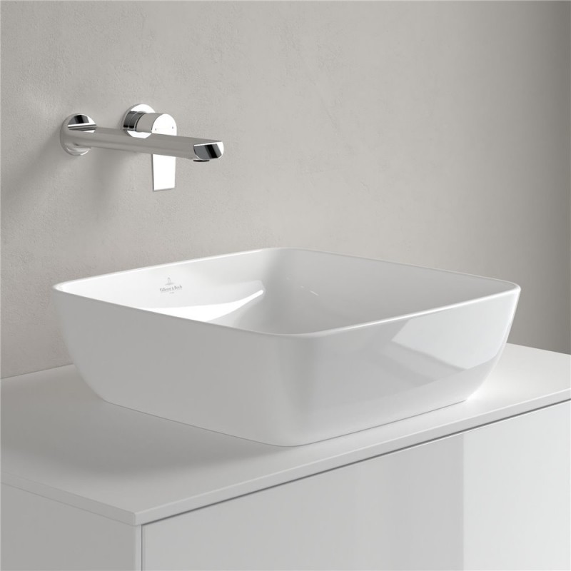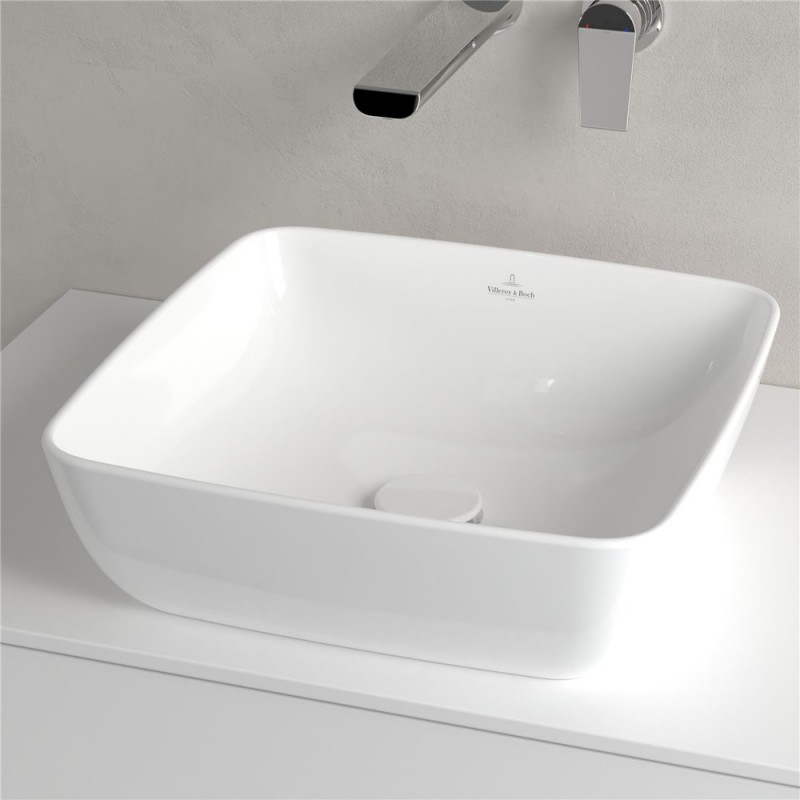 umývadlo na dosku ARTIS 41 x 41 bez prepadu biele C+- materiál : TITAN keramika, - pre nástennú armatúru alebo armatúru sa zvýšeným telom - bez plochy pre otvor pre armatúru - bez prepadu - vhodný nábytkový program: Legato - pri modeloch bez prepadu je nutné použiť neuzatvárateľný ventil ktorý nie je súčasťouCeramicPlus - je špeciálna povrchová úprava keramiky, ktorá dokázateľne odpudzuje nečistotu a zabraňuje usádzaniu vodného kameňa. Podstatne uľahčuje čistenie a nečistota sa dá veľmi ľahko zotrieť bez použitia čistiacich prostriedkov., VILLEROY BOCH ,