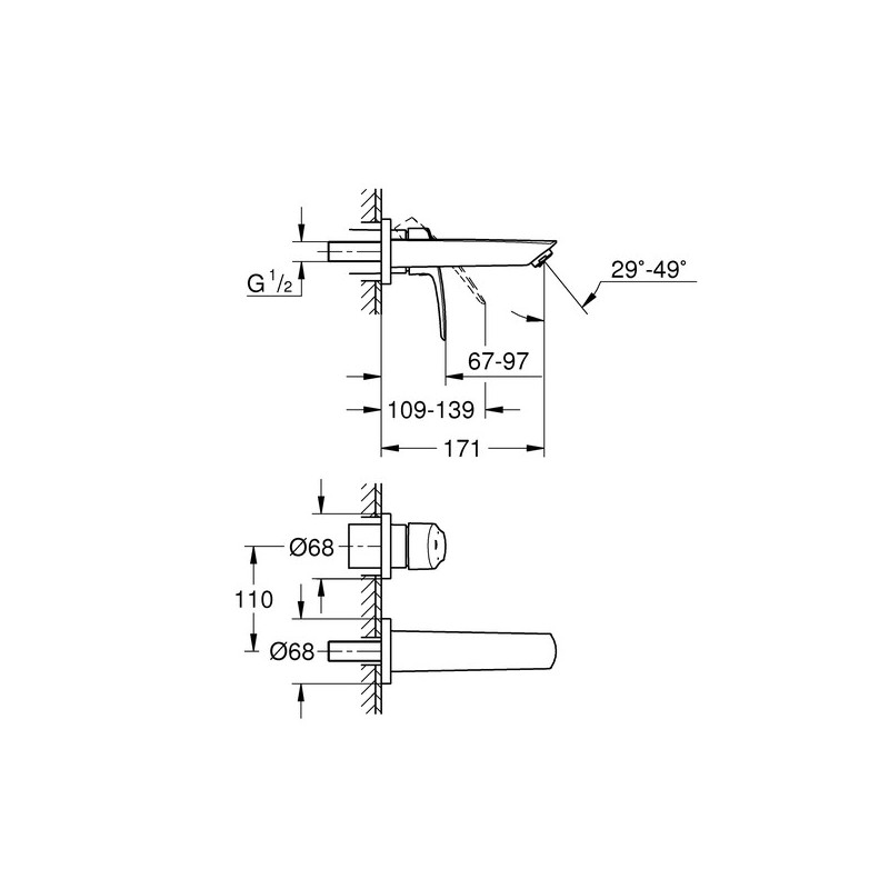 Montáž na stenu Kovová páka Bez podomietkového telesa Sada pre kompletnú inštaláciu pomocou podomietkového telesa 32635000 (alebo 23571000) Kovová rozeta GROHE Long-Life - žiarivý... zobraziť viac