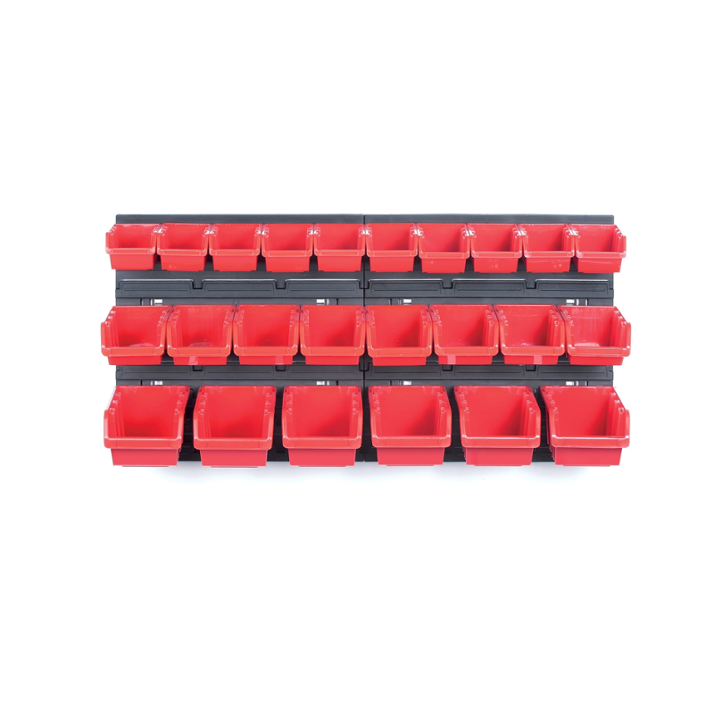 Panel závesný 24 Boxov na nár.ORDERLINE 800x165x400Set obsahuje: - 2x závesný panel KBBS40-S411 - 8x box KTR6-3020 - 6x box KTR8-3020 - 10x box KTR12-3020 Farba Čierna/červená Kód farby S411/3020 Dĺžka 80 cm Šírka 16,5 cm Výška 40 cm Hmotnosť 1766 g Materiál Plast