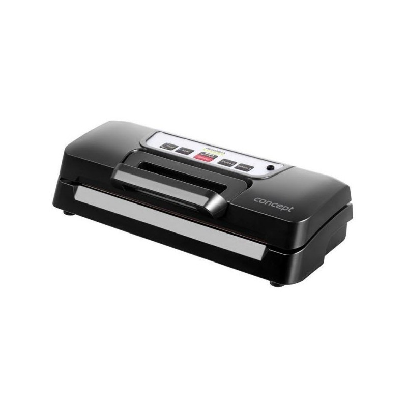 Automatické vákuovanie potravín PULSE funkcia pre úplnú kontrolu nad vákuovaním krehkých potravín Držadlo pre ľahkú manipuláciu Voľba suchých a vlhkých potravín Vyberateľný zásobník pre zvyškovú vlhkosť Protišmykové nožičky Rozmer: 40 x 16 x 9 cm Podtlak: 0,7 bar Farba: čierna Príkon: 110 W Napätie: 220 - 240 V Príslušenstvo: 10 vreciek 20 x 30 cm Hadička k vákuovaniu potravín v nádobách Rezací nôž Dokúpiteľné príslušenstvo: Sada okrúhlych dóz pre vákuové skladovanie 3 ks VD8100 Sada fólií pre vákuové balenie 2 ks VB2203 Sada fólií pre vákuové balenie 2 ks VB2806
