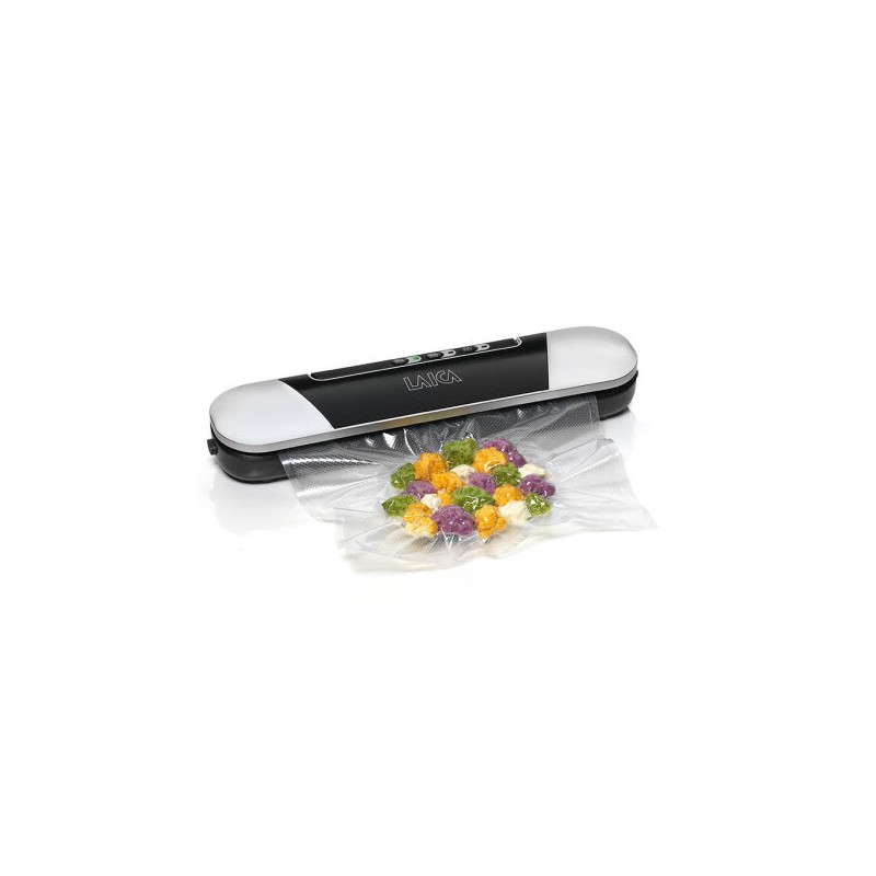 Vákuové balenie je prirodzený spôsob predĺženia trvanlivosti potravín. Správnym skladovaním predĺžite trvanlivosť až 4 násobne. Oxidácia sa v hermeticky uzatvorenom priestore výrazne spomaľuje, zároveň sa znižuje kazivosť potravín a spomaľuje rast baktérií. Potraviny zostávajú chrumkavé a nevysychajú. Vakuovací prístroj LAICA je určený pre užívateľov, ktorí ocenia jednoduchosť, kvalitu uložených potravín a denné vákuové balenie menšieho množstva jedla. - Výkon pumpy: 9L/min - Podtlak: -0,6 bar - Príkon: 90 W - Manuálne vákuovanie - 2 rýchlosti odsávania: normálne a jemné potraviny - Integrovaný rezák roliek - Max. šírka roliek: 30 cm - Hmotnosť: 755 g - Rozmery produktu: 5 cm x 37 cm x 8 cm - Príslušenstvo: 1 rolka 25 x 600 cm - Napájanie zo siete - Magnety v spodnej časti prístroja slúžiace na upevnenie ku kovovým povrchom napr. na chladničku